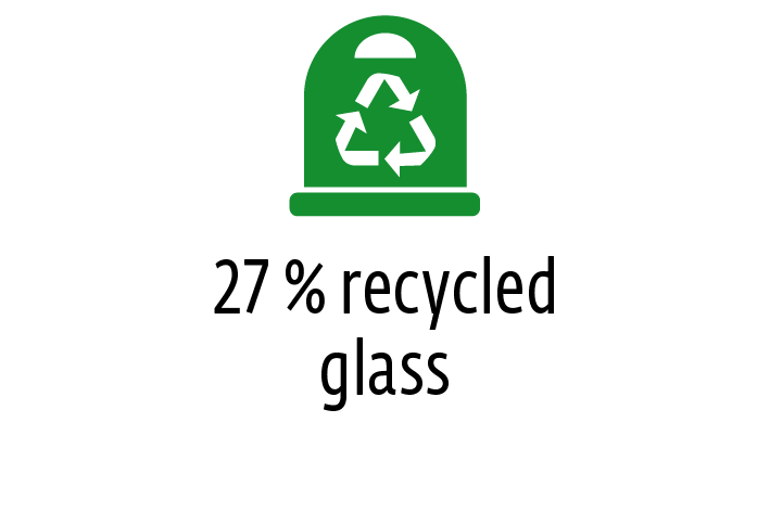 Das Glas des Produktes besteht zu XX % aus Altglas.