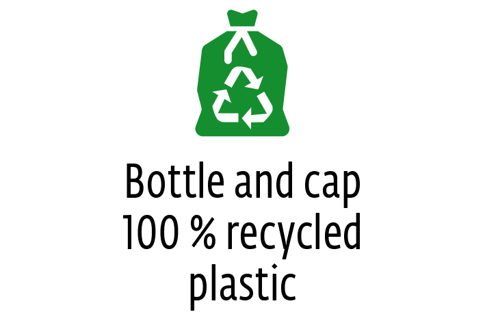 Der Kunststoff von Flasche, Deckel oder Marker besteht zu XX % aus Recyclingmaterial.