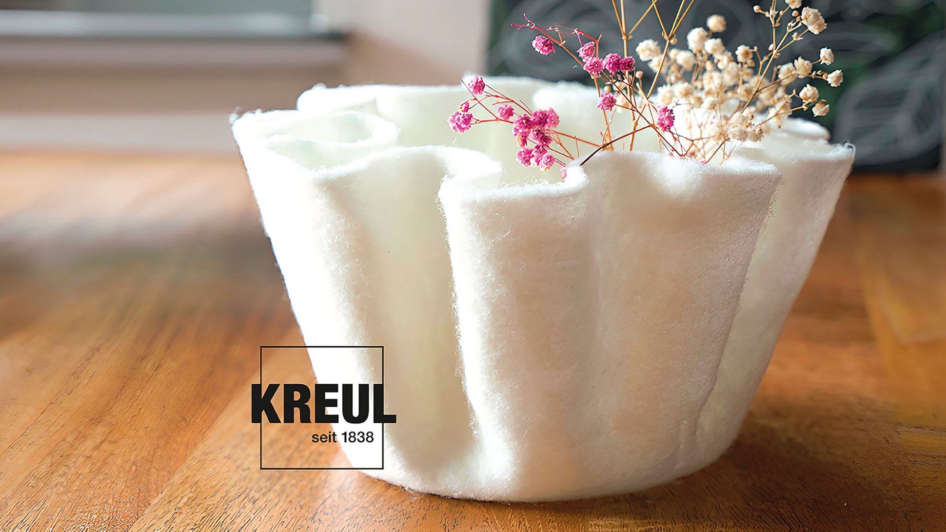 Mit dem KREUL Textil Festiger verwandeln Interior-Begeisterte Textilien, Wolle oder Papier in stilvolle Dekorationen im 3D-Style. Denn aus weich wird im Nu fest. Die Materialien behalten ihre natürliche Stoff-Optik, sind aber als Form modelliert - eine neue Bestimmung als schickes Deko-Objekt.