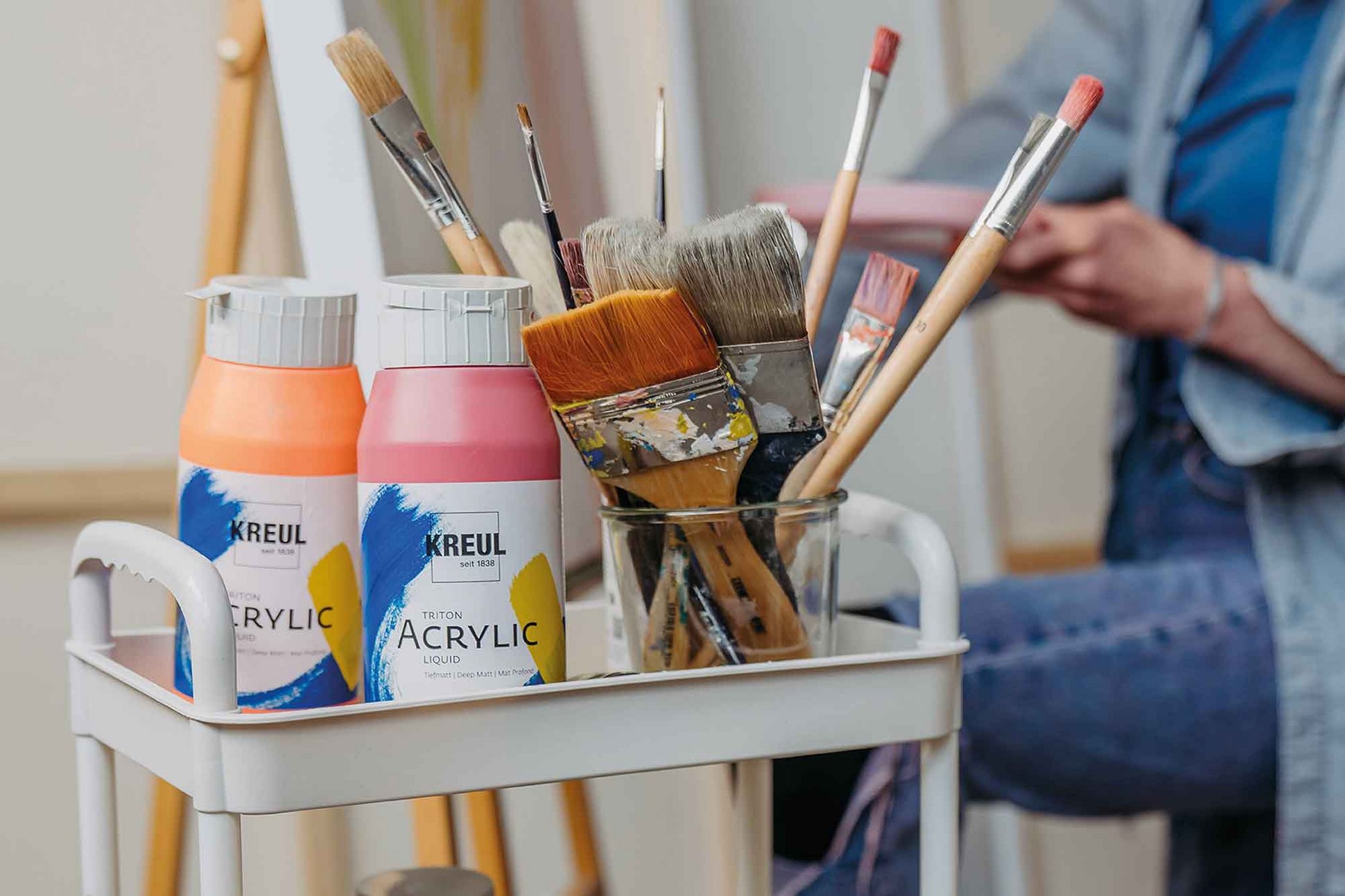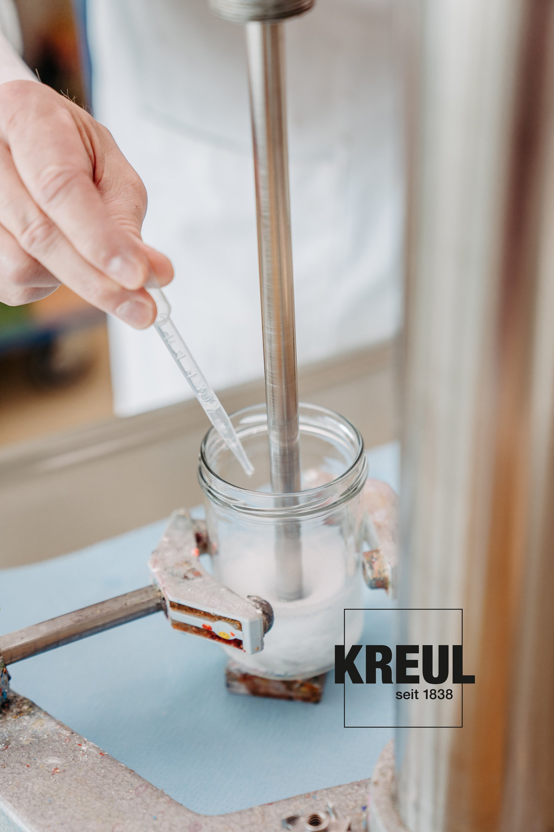 Über 100 Mitarbeiter:innen arbeiten tagtäglich daran, dass Kinder, Künstler und Kreative ihre Farbideen mit KREUL verwirklichen können. Das reicht vom kleinen 20 ml-Glas bis hin zur großen 750 ml-Flasche, von spritziger Seidenmalfarbe bis hin zur cremigen Fingerfarbe. Denn Farbe ist nicht gleich Farbe. Je nach Anwendung, Technik und Einsatzbereich braucht es spezielle Töne und Rezepturen. Sie herzustellen bedarf Sorgfalt und viel Erfahrung. All das bündeln wir bei KREUL an einem Standort.