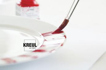 - Farben nicht mit Wasser verdünnen. KREUL Glass & Porcelain Farbverdünner (Art.-Nr. 16273) verwenden.
